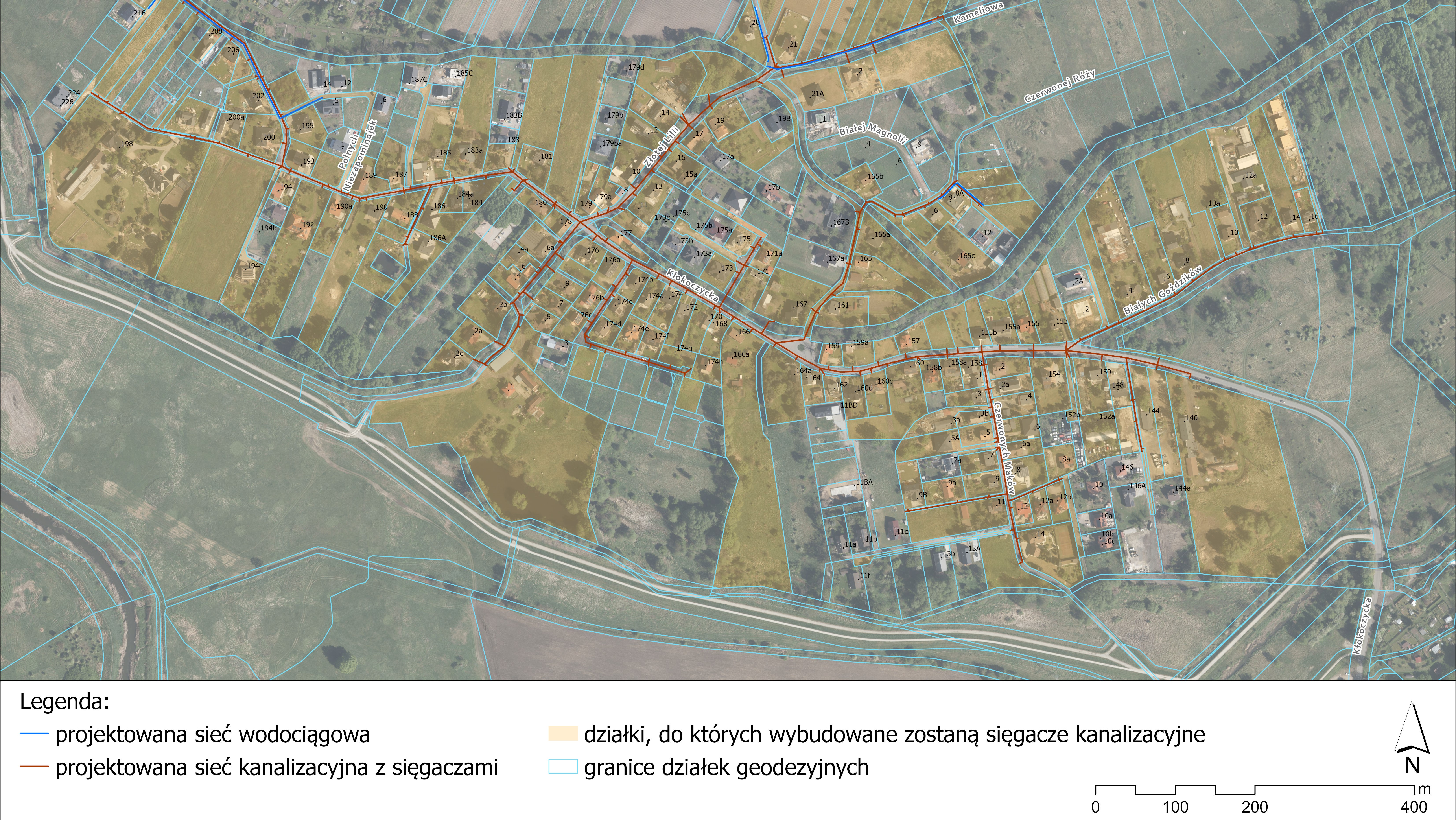 | Ulice do skanalizowania: | Kłokoczycka, Czerwonych Maków, Złotej Lilii, Kameliowa, Białych Goździków, Czerwonej Róży. |