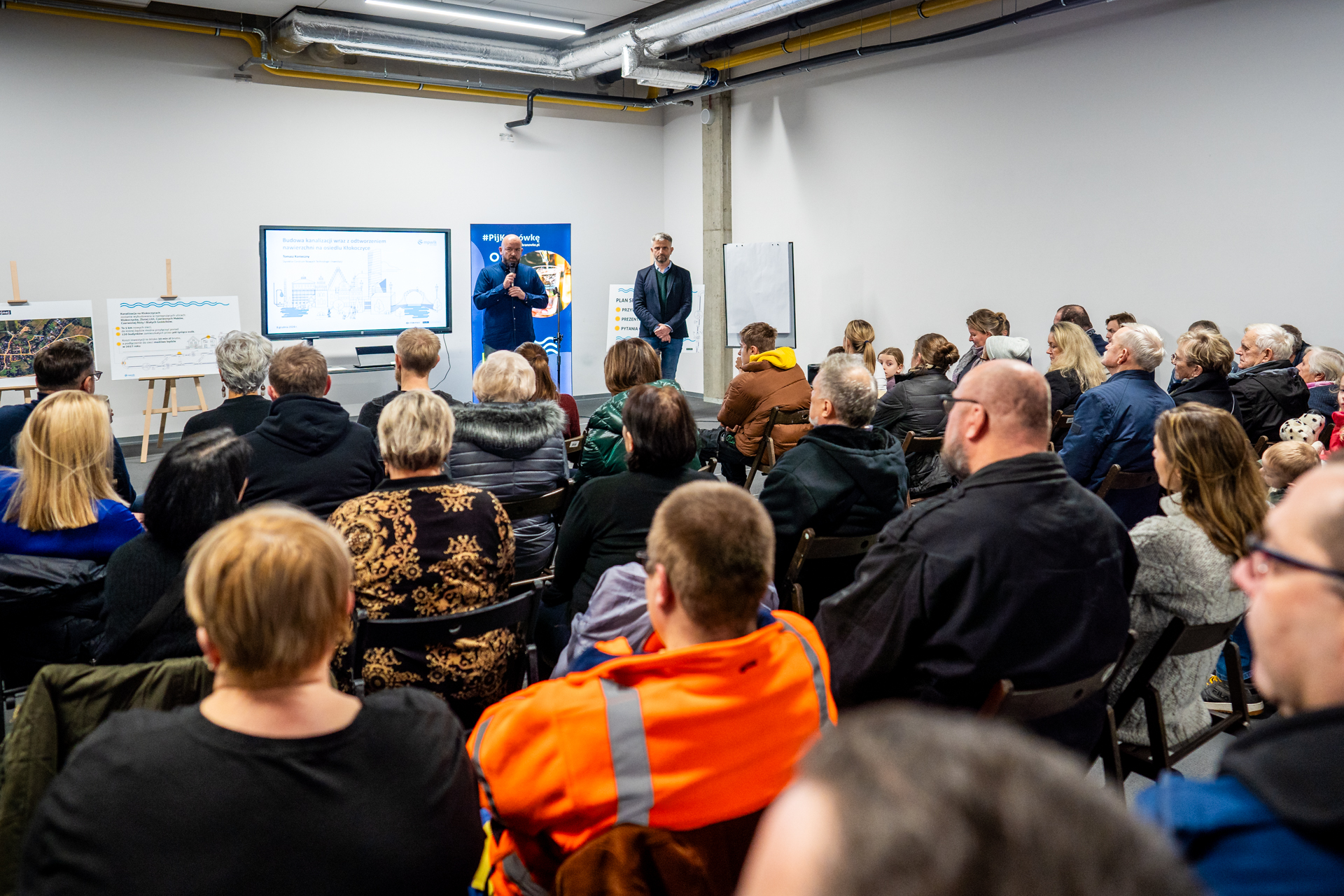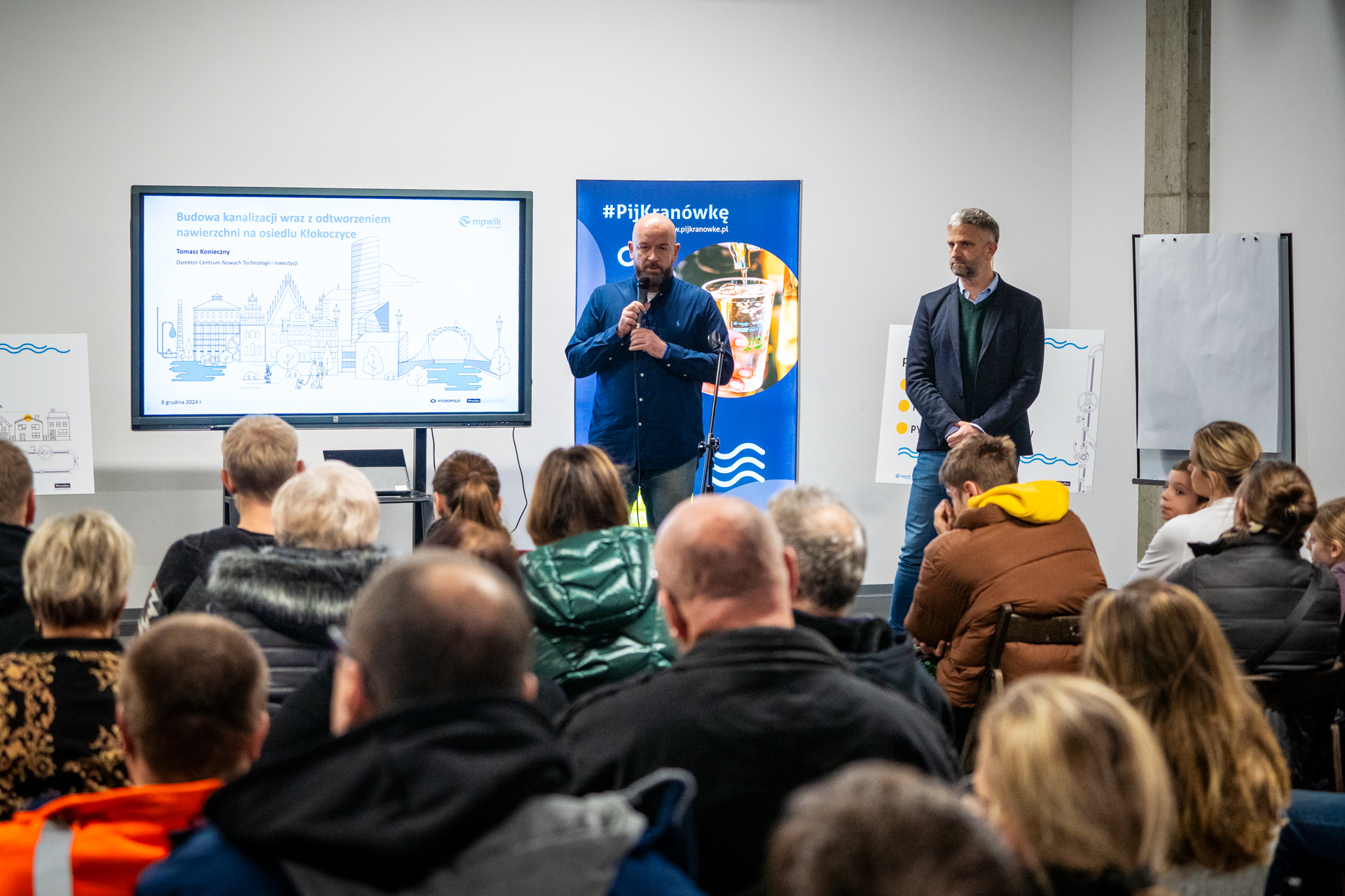 W niedzielny wieczór, 8 grudnia 2024 r., w KGHM Ślęza Arena Prezydent Wrocławia Jacek Sutryk, przedstawiciele MPWiK Wrocław, Zarząd Dróg i Utrzymania Miasta we Wrocławiu i Urzędu Miejskiego Wrocław szczegółowo omówili plany budowy kanalizacji na osiedlu Kłokoczyce. Mieszkańcy uzyskali odpowiedzi na kluczowe pytania dotyczące inwestycji, w tym lokalizacji, harmonogramu prac oraz korzyści wynikających z realizacji projektu. W spotkaniu wzięło udział ponad 100 osób. A ponieważ zapraszaliśmy całe rodziny, to animatorzy Hydropolis zajęli się najmłodszymi, tak by ich rodzice i opiekunowie mogli spokojnie skupić się na spotkaniu i szczegółach inwestycji.