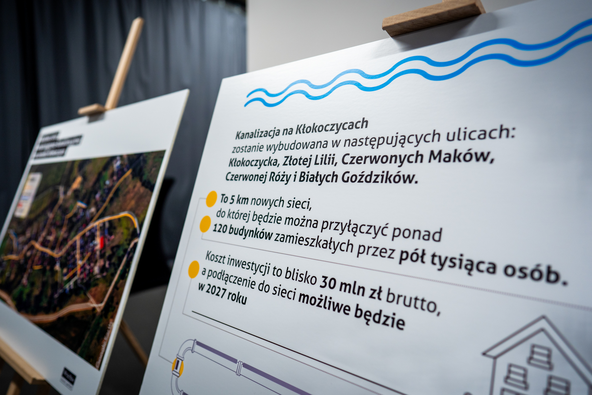 – budowie kanalizacji sanitarnej w ul. Czerwonych Maków, Złotej Lilii, Kłokoczyckiej (w okolicy posesji nr 208 i 196),