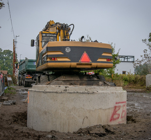 - ul. Kłokoczycka – budowa przepompowni ścieków w rejonie budynku 180 i placu zabaw. Prace prowadzone są blisko łuku, co może ograniczać widoczność. Prosimy o zachowanie szczególnej ostrożności, stosowanie się do obowiązujących znaków drogowych i nieprzekraczanie maksymalnej prędkości 30 km/h. 5 grudnia zaplanowano dostawę dużych elementów pompowni i w trakcie rozładunku przejazd ul. Kłokoczycką będzie utrudniony.
